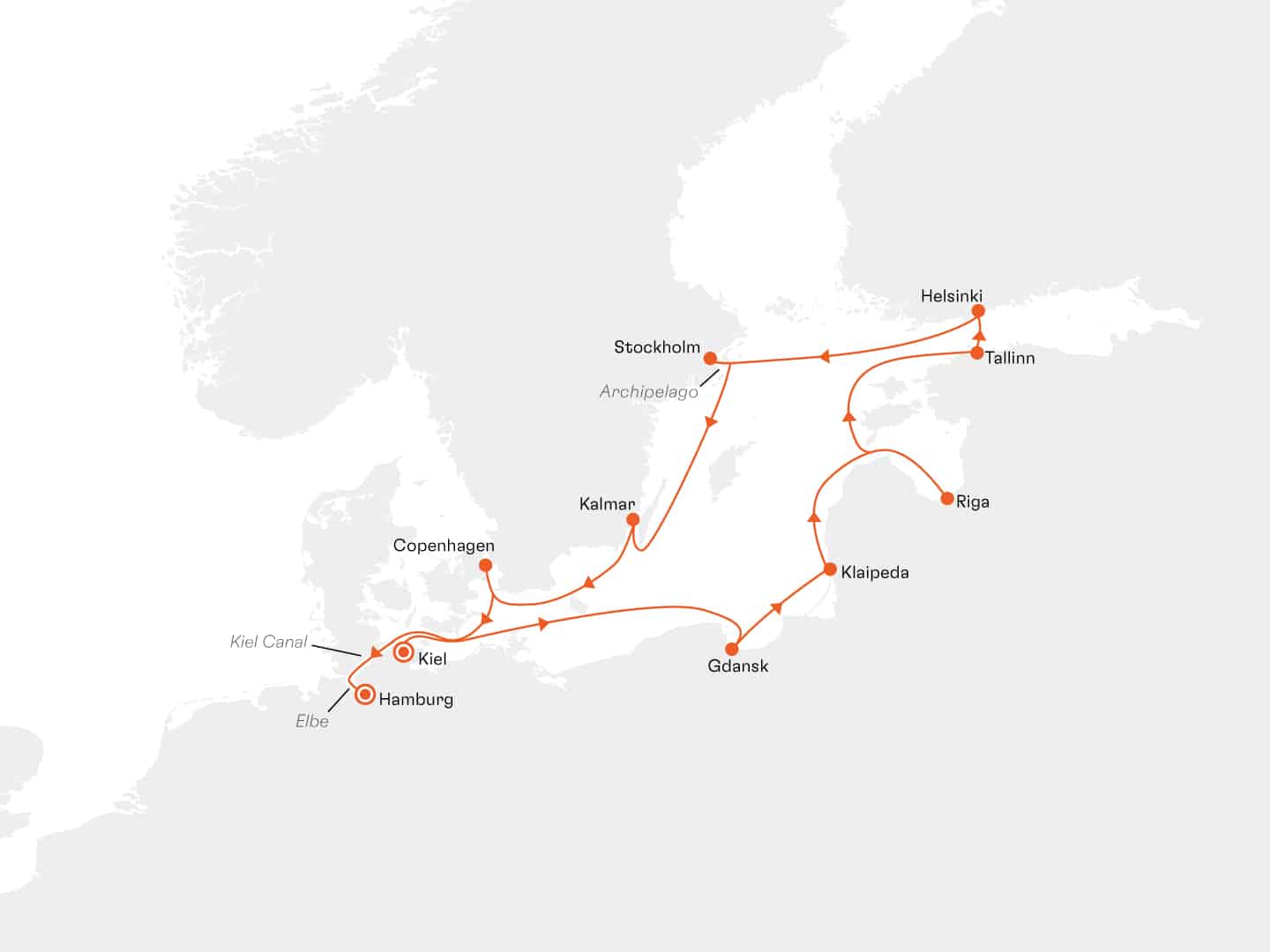 Reisschema van de cruise over de Baltische Zee